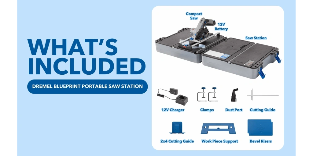 Dremel Blueprint CS12V-S1C Taşınabilir Tezgah Testere , Kesme Kutusu ve 12V Akülü Kompakt Testere ile birlikte