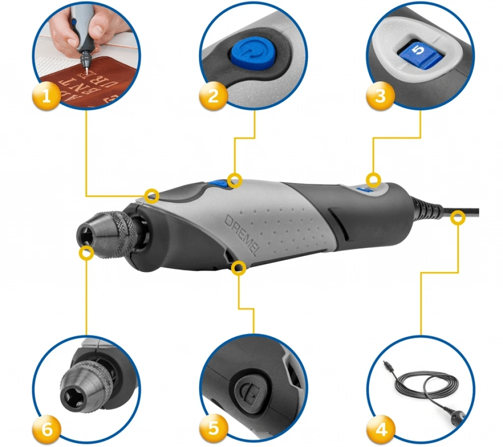 İster gravür tasarımları, ister hafif zımparalama veya parlatma işlemleri olsun, bu alet çok çeşitli hobi gereksinimleriniz için güvenilir yol arkadaşınızdır.